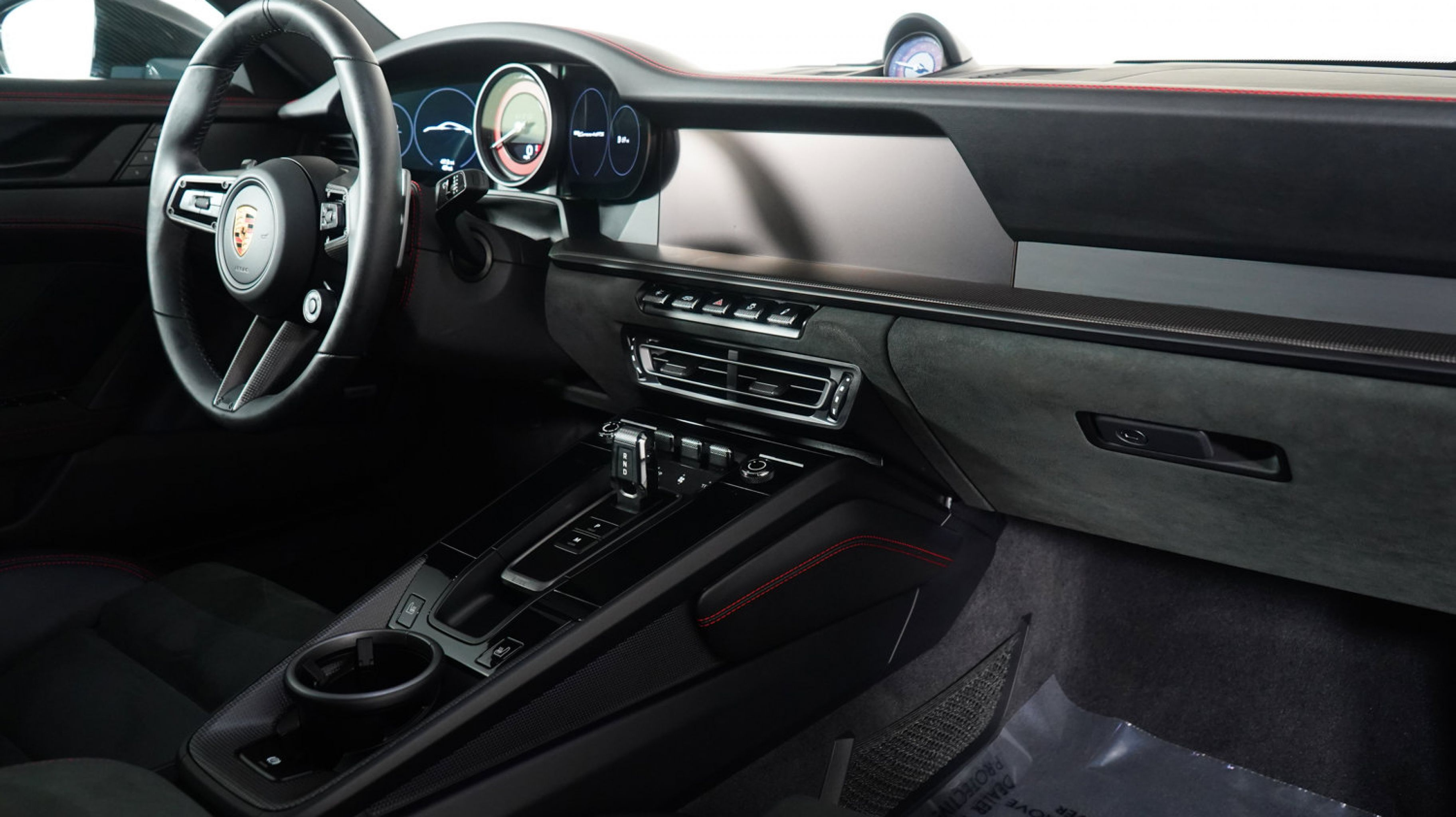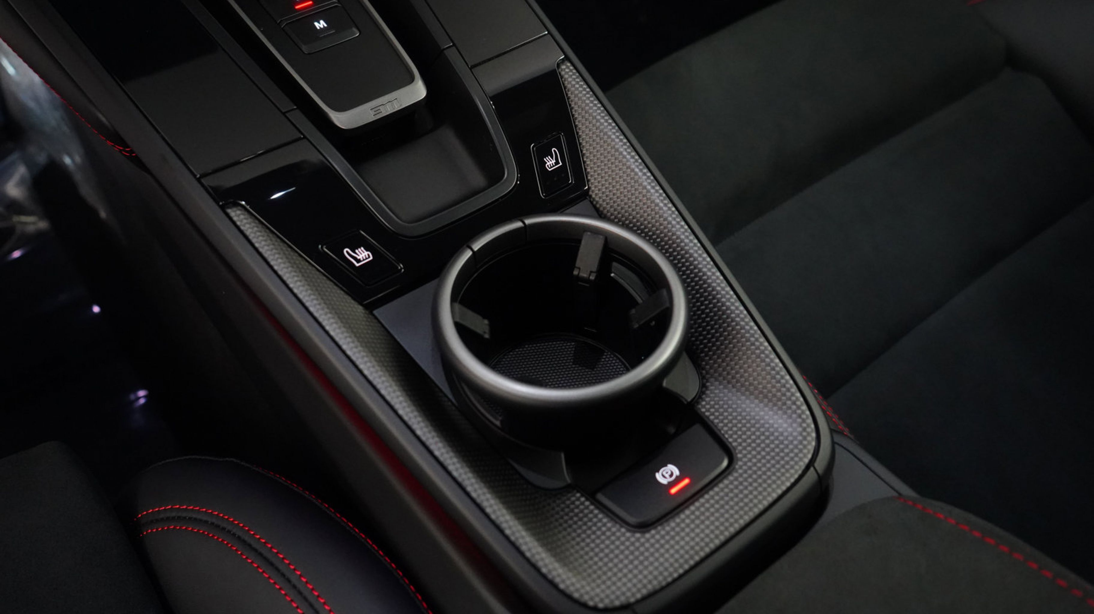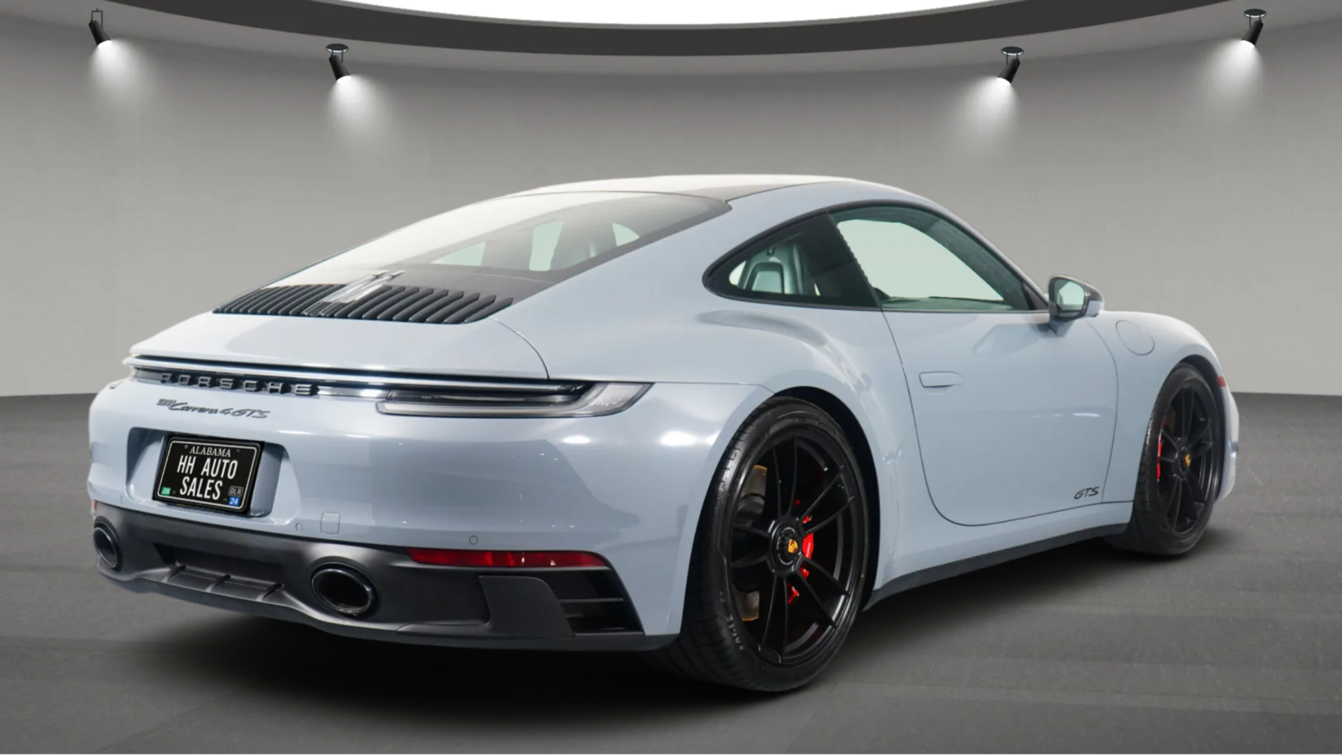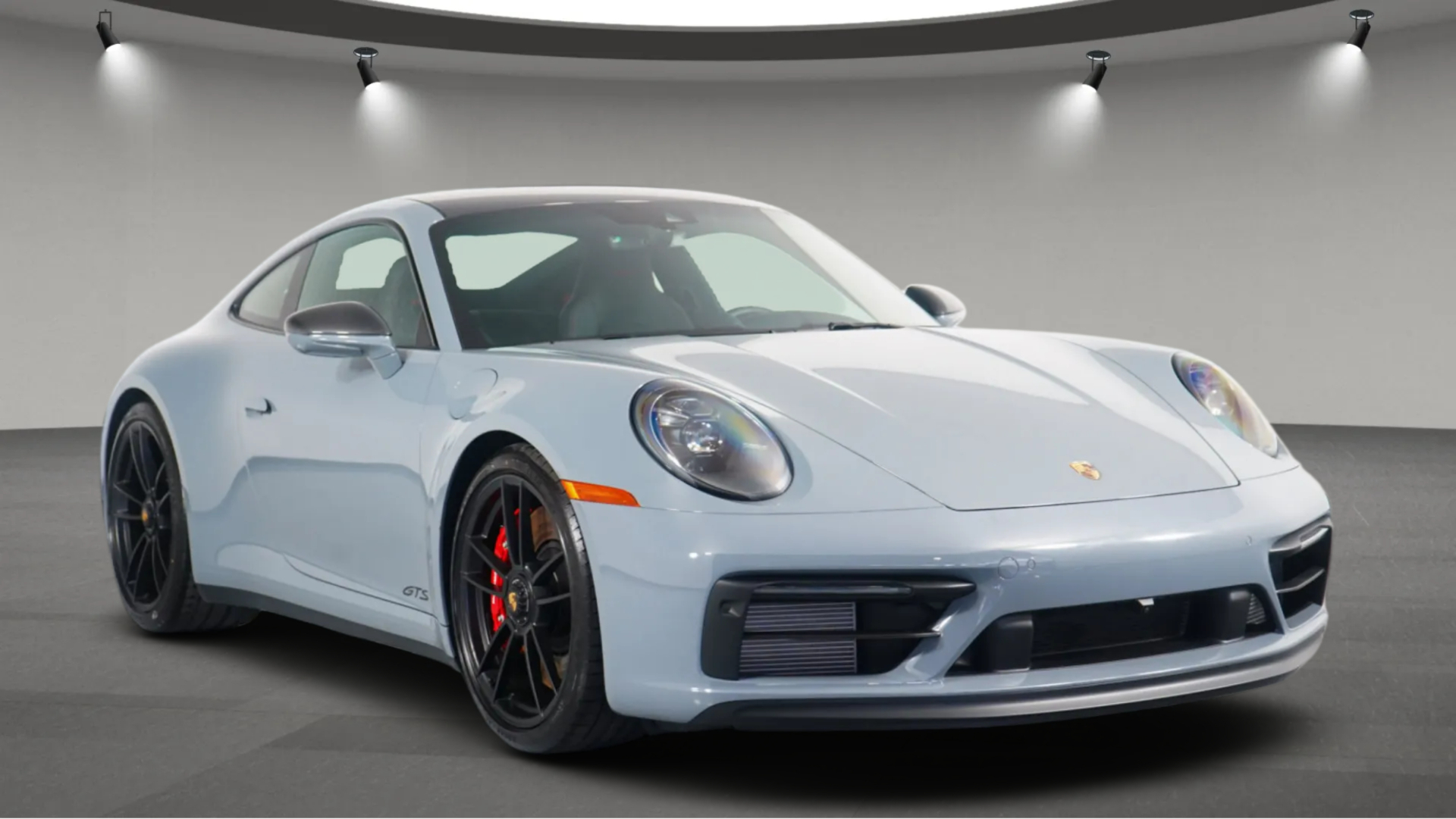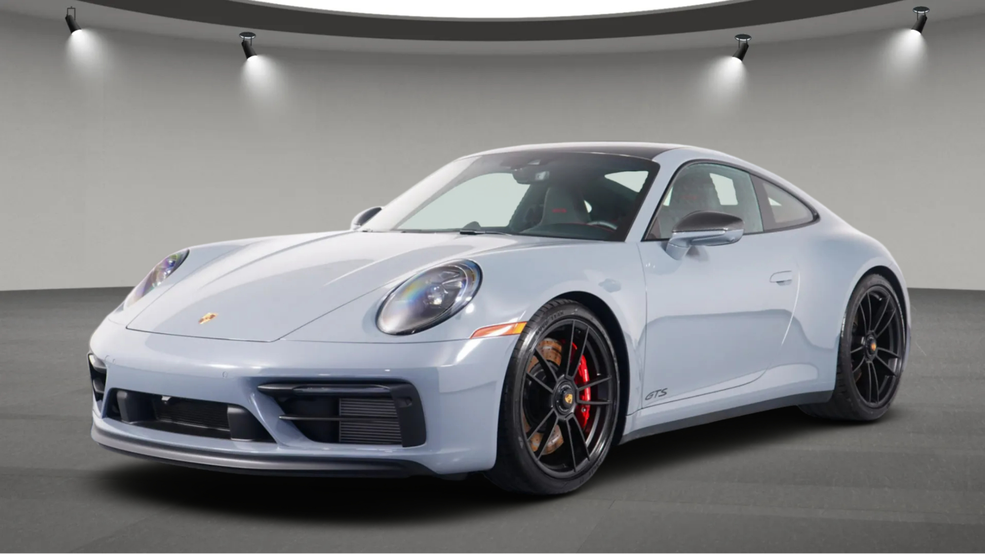 Its gray exterior gives the vehicle a sleek and modern appearance, while the black interior with Carmine Red stitching adds a sporty and refined touch to the cabin. Designed as a coupe, it blends dynamic performance with premium comfort and distinctive styling.